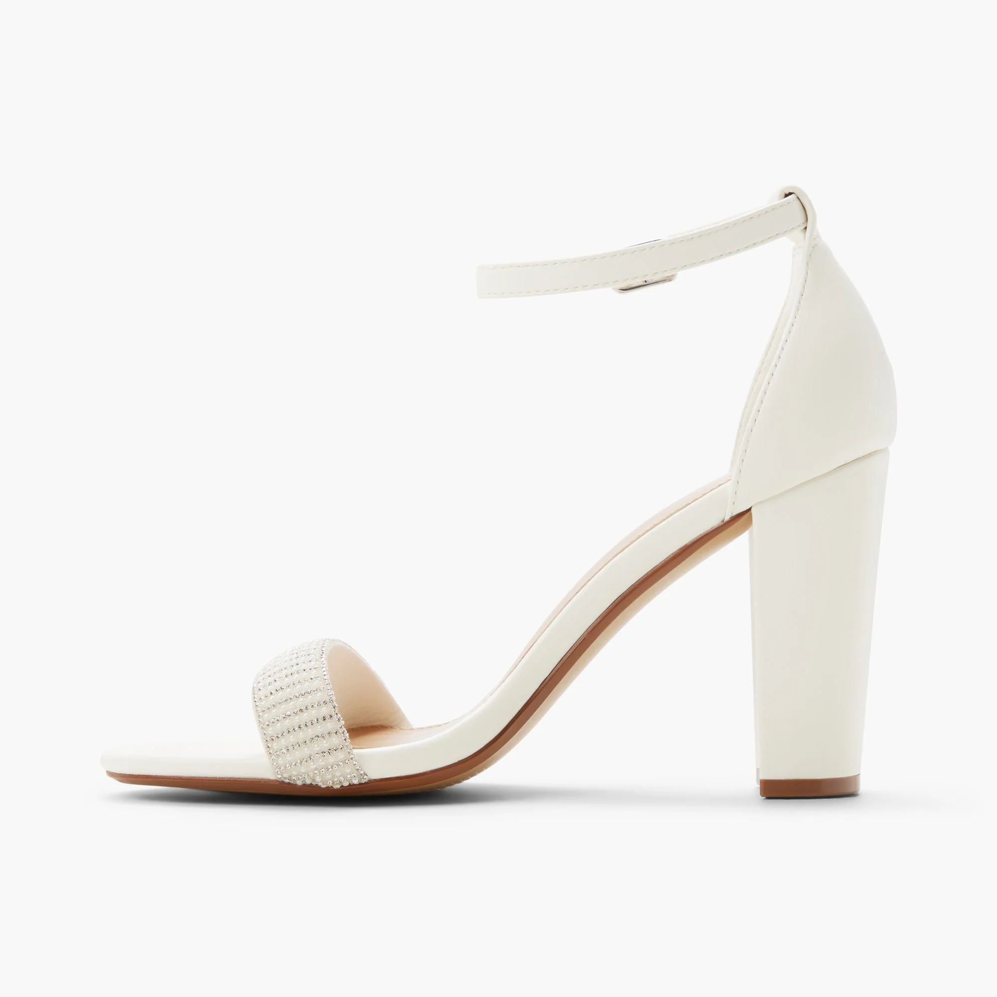 Veloura is made for the aisle, the after-party, and every photo in between. This ankle-strap sandal features a sleek block heel and delicate pearl detailing across the front strap for a soft, romantic finish. Polished, elegant, and wedding-ready without feeling overdone. The kind of heel you’ll want on long after “I do.”